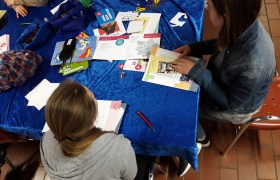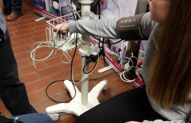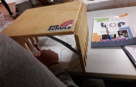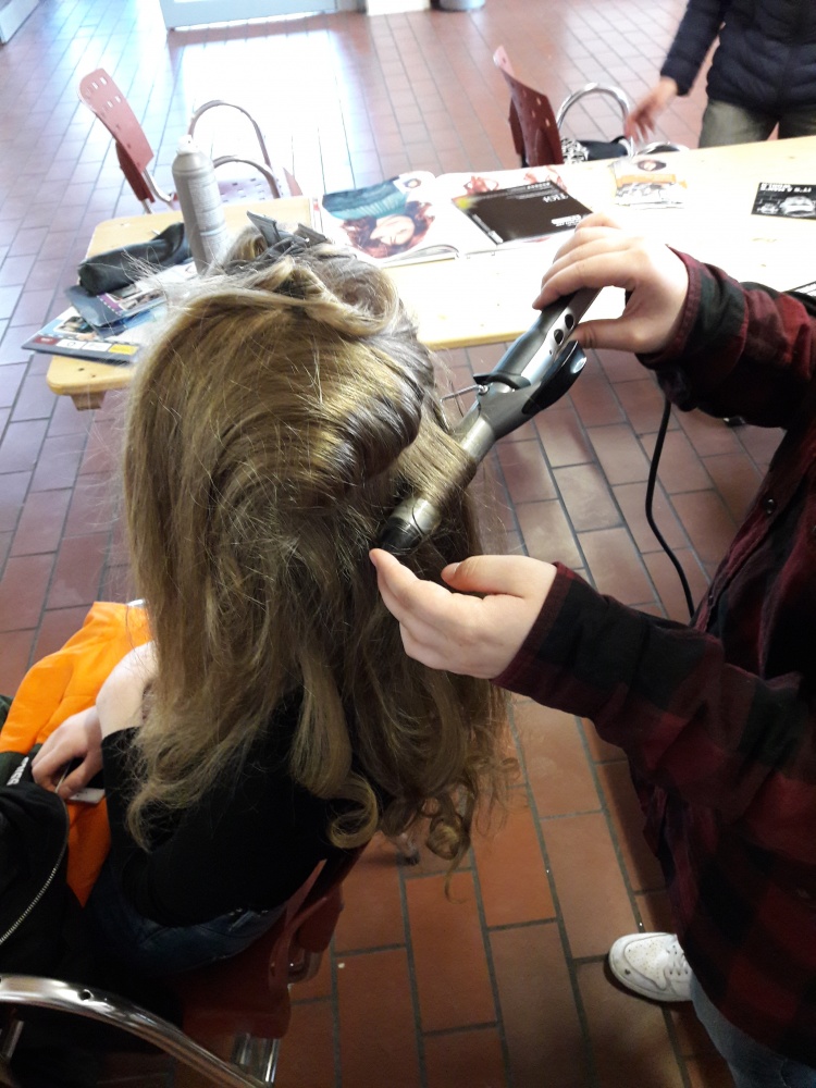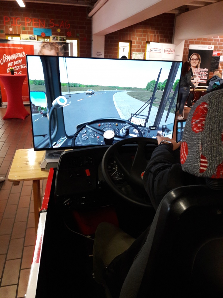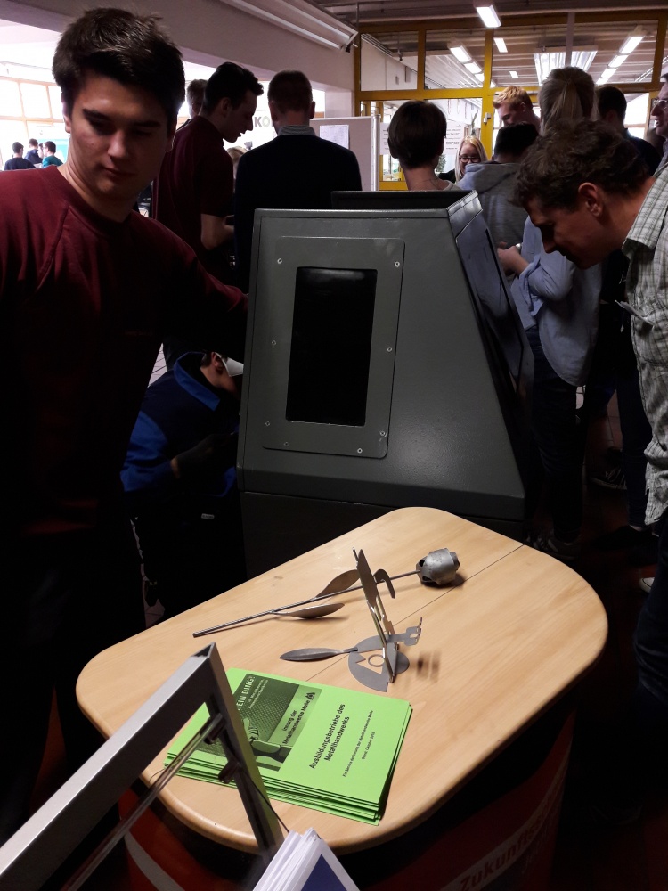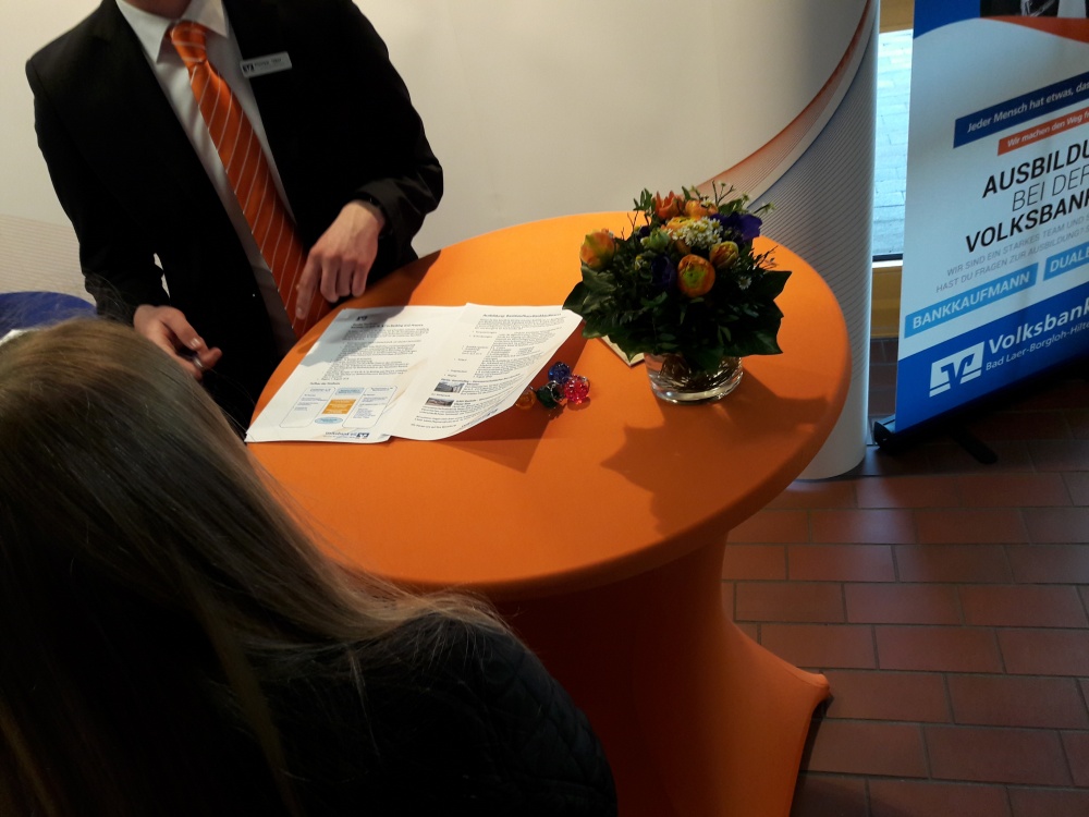 Am Dienstag stürmten bereits um 8 Uhr die ersten Schulklassen in die Ausstellungshalle der Berufsbildenden Schulen (BBS). Beim Fotoshooting mit anschließender Bildbearbeitung hörten Vivien, Annina und Johanna vom Gymnasium Melle von der Ausbildung als Mediengestalterin und Kauffrau Marketing/Kommunikation. Vollbesetzte Tische auch am Stand der Polizei, wo die Achtklässler konzentriert 30 Fragen eines Einstellungstests beantworteten. „Die Zettelbox aus Edelstahl habe ich allein gebaut“, erzählte der 14-jährige Florian Knappe am Stand des Unternehmens Teledoor aus Wellingholzhausen, während er den Anweisungen der Azubis Roger, Lukas und Malte lauschte.