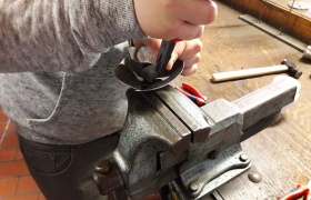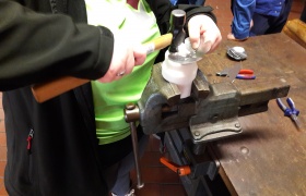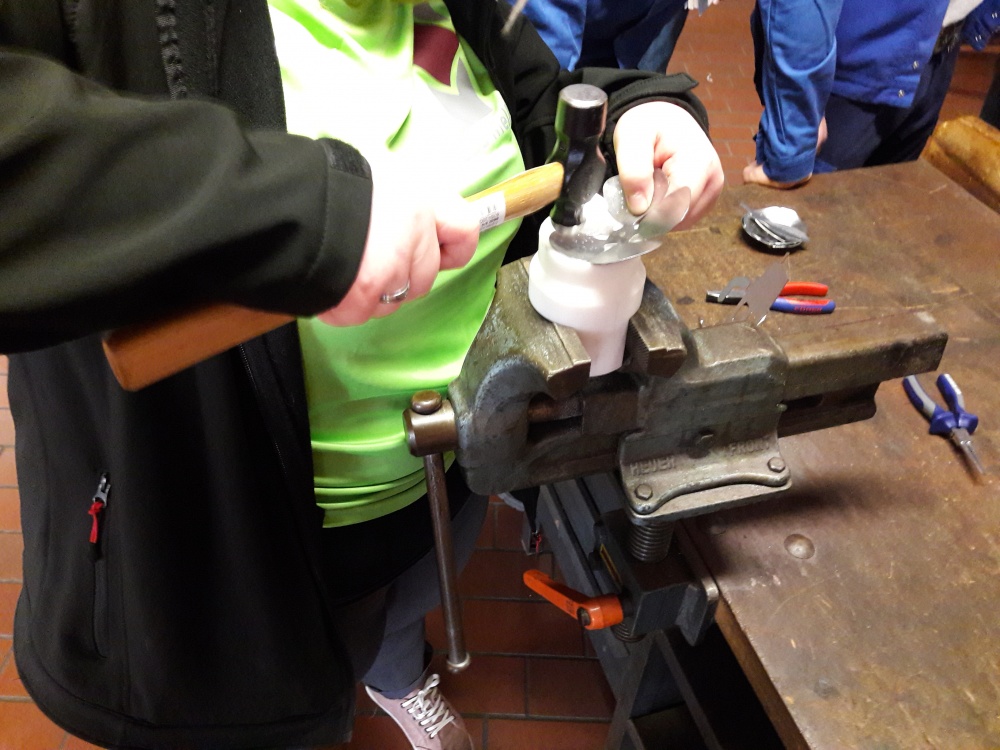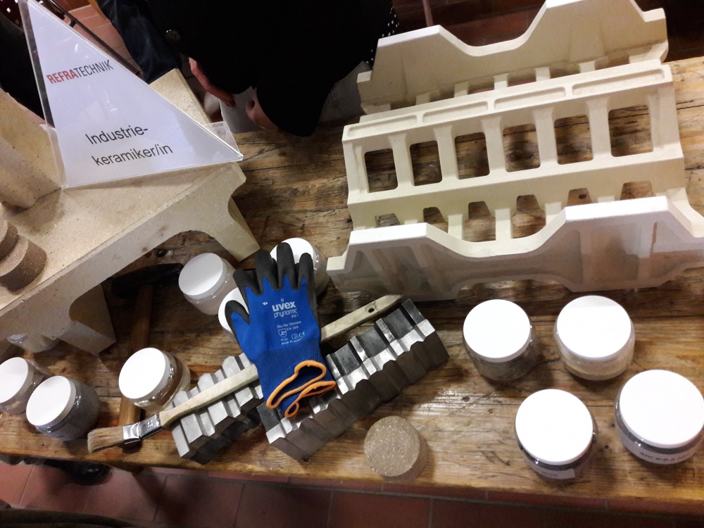 Den Praxistest mit Arbeitsproben absolvierten die Schüler für mindestens sechs Ausbildungsberufe. Einige schafften auch mehr, während sie an jedem Stand gewissenhaft ihr Laufbuch ausfüllten. Bei Firma Refratechnik aus Buer erklärten Sefer Imeraj und Fatih Nuri Azattemür ihr Unternehmen. Die Schüler Janis und Bjane staunen über schwere Steine für Müllverbrennungsanlagen und manuelle Pressen zum Ausformen von feuerfesten Steinen. „Wir suchen noch Auszubildende für den Beruf des Industriekeramikers“, erklärte Personalleiterin Anja Schulke.