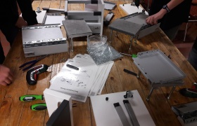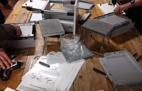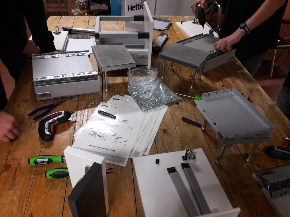 Zahlreiche bekannte, aber auch viele neue Unternehmen, wie Firma Hettich prägten das Bild. „Wir bilden am Standort Kirchlengern 150 Azubis aus und wollen unseren Horizont nach Niedersachsen erweitern“, berichtete Frank Fischer, der gern mehr Mädchen ausbilden würde. Aline Wüppelmann und Dorina Haja von der Ratsschule bauten geschickt eine Schublade.