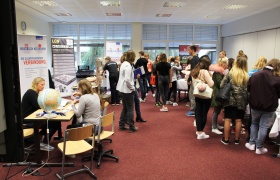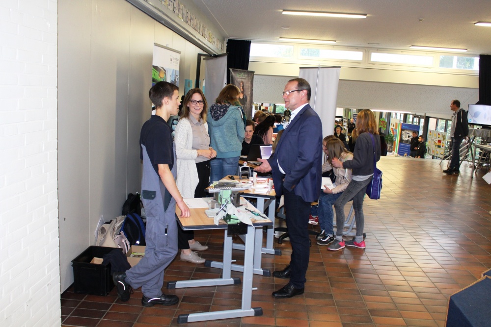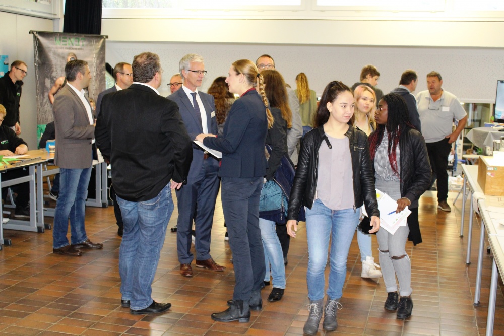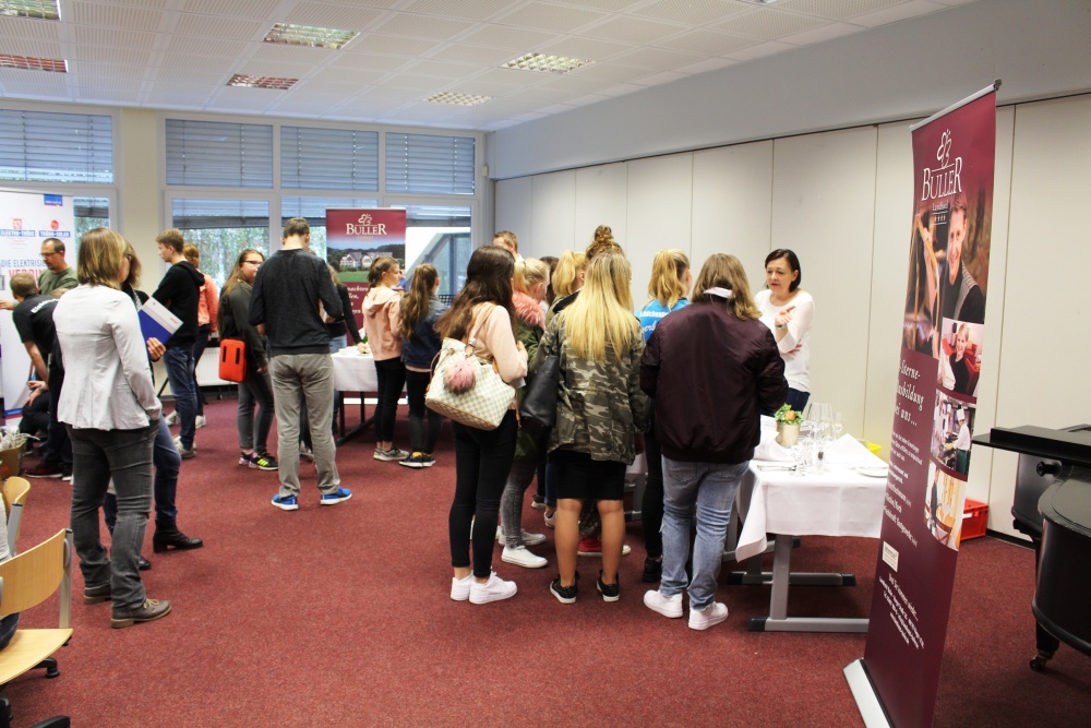 Um 14 Uhr starteten dann Neunt- und Zehntklässler in das Speeddating mit den Unternehmen: „Es wurden 45 Gespräche geführt, bei denen es um konkrete Ausbildungsplätze ging,“ berichtet Magdalena Antonczyk. Verschiedene Unternehmen vereinbarten mit den Jugendlichen Probearbeitstage und vertiefende Praktika. „Für einige Schüler ging es nach den Gesprächen direkt in eine weitere Runde in der Vorauswahl der Auszubildenden: Eine große Chance auf einen Ausbildungsplatz“, so die Organisatorin von der MaßArbeit. Ab 18 Uhr hieß es dann Bühne frei für die Eltern. Auch hier konnten einige Unternehmen gute Kontakte knüpfen. Doch viele Firmen hätten sich eine stärkere Beteiligung gewünscht: „Wir bieten tolle Ausbildungsmöglichkeiten an und würden auch gerne die Eltern des potenziellen Nachwuchses darüber informieren“, fasste Jennifer Kleinostendarp, AGW Elektro Große-Wördemann in Georgsmarienhütte, den Eindruck der Unternehmen zusammen.
